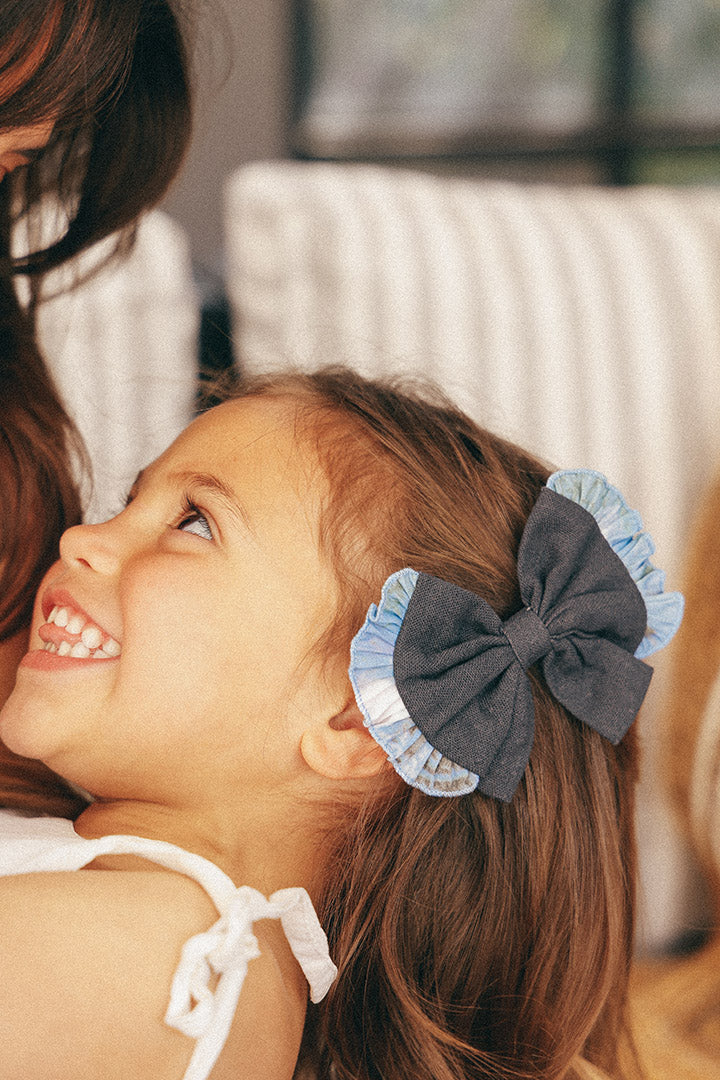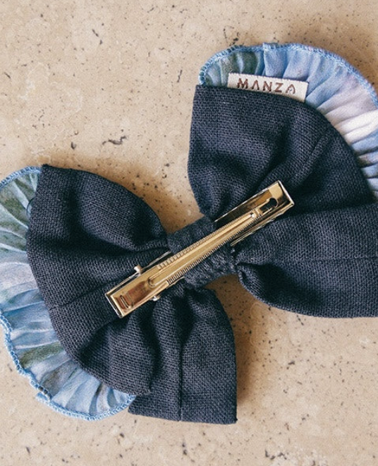 Os nossas laços estão disponíveis em cores, tamanhos e estilos para todos os gostos! São feitas à mão com linho e tecidos leves, que acrescentam um toque delicado e original. O Laço Midi Basic tem um alfinete médio de 5,5 cm, sendo perfeita para coques médios para mulheres e meninas. Como todos os acessórios, são feitas à mão por artesãos no Chile.