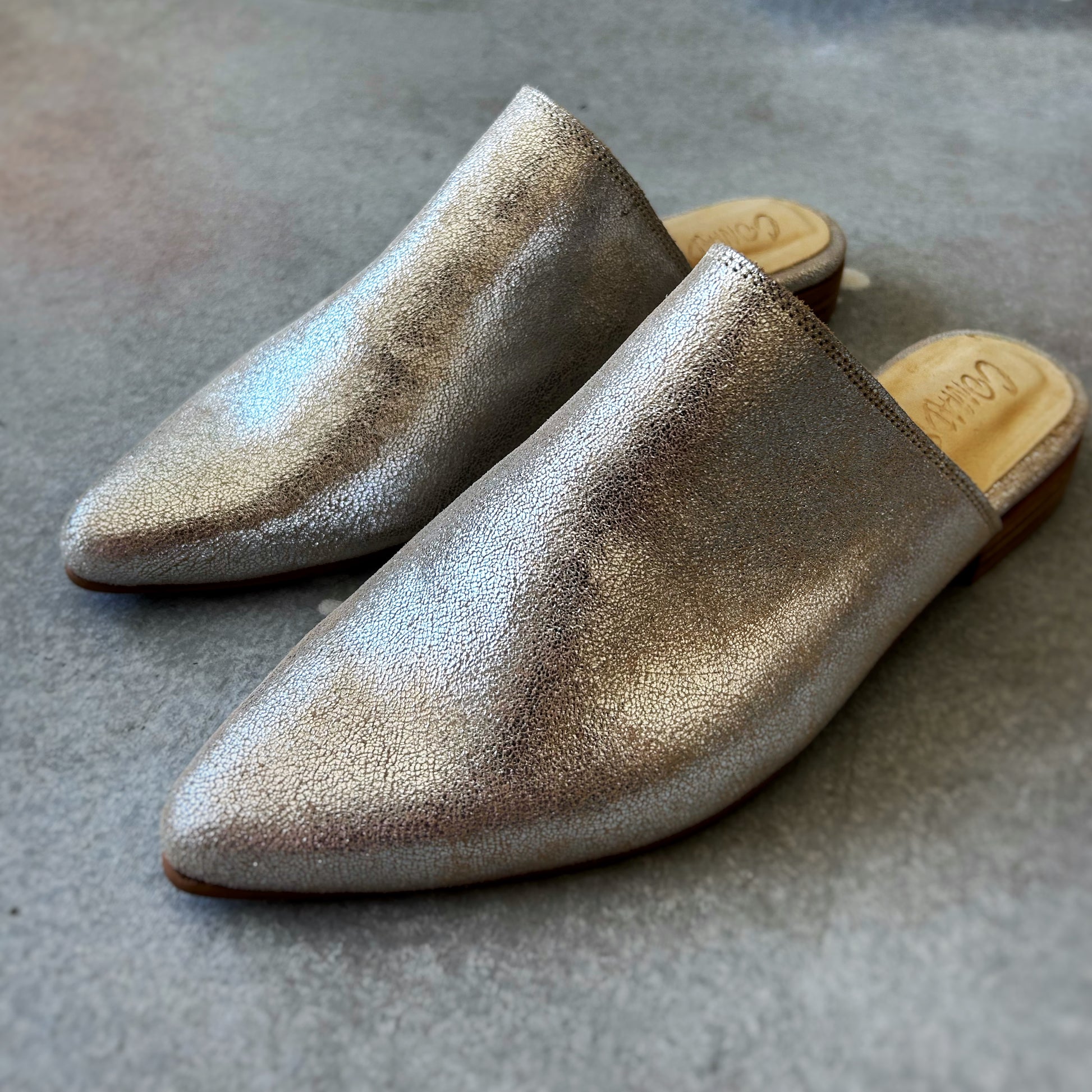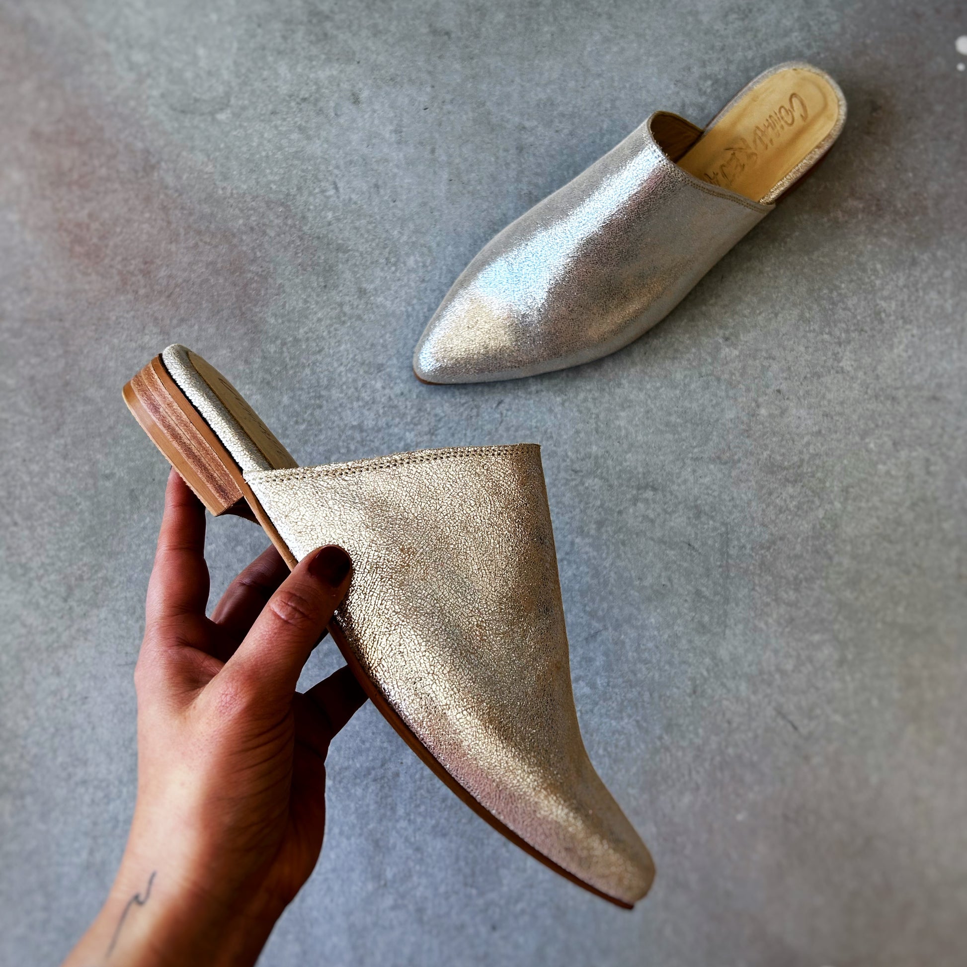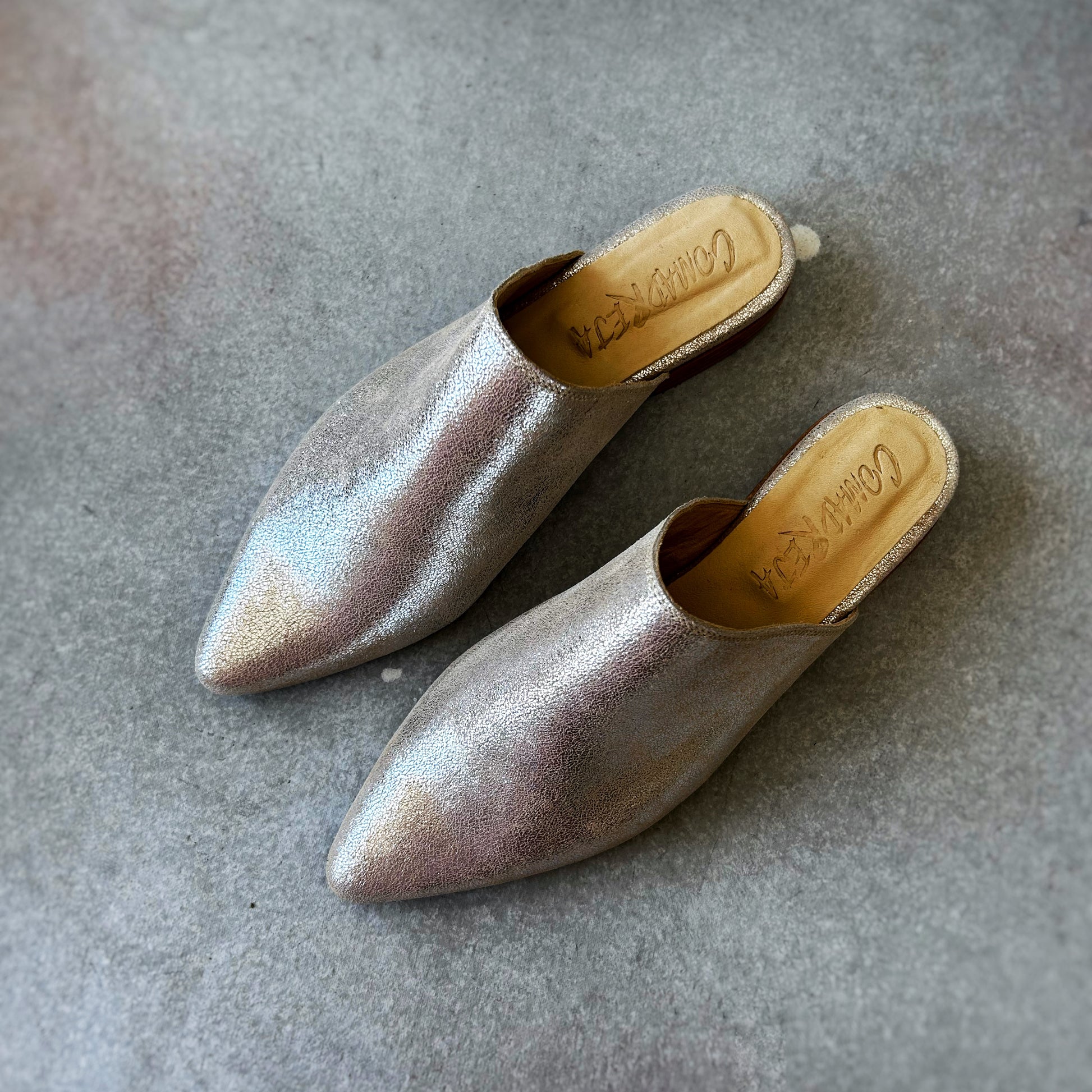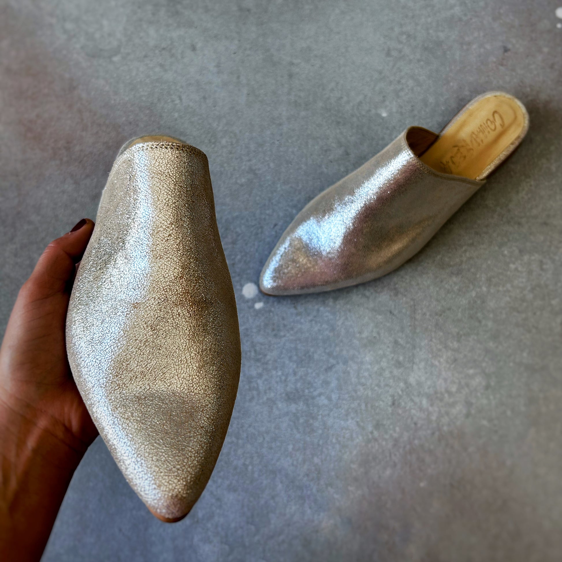 Mules longa, feita em pele 100% prateado brilhante. Salto de aproximadamente 3 cm. Elegantes e diferentes, estas mules vão, sem dúvida, elevar o seu look. Atemporais e versáteis, elas darão um toque especial a qualquer outfit.